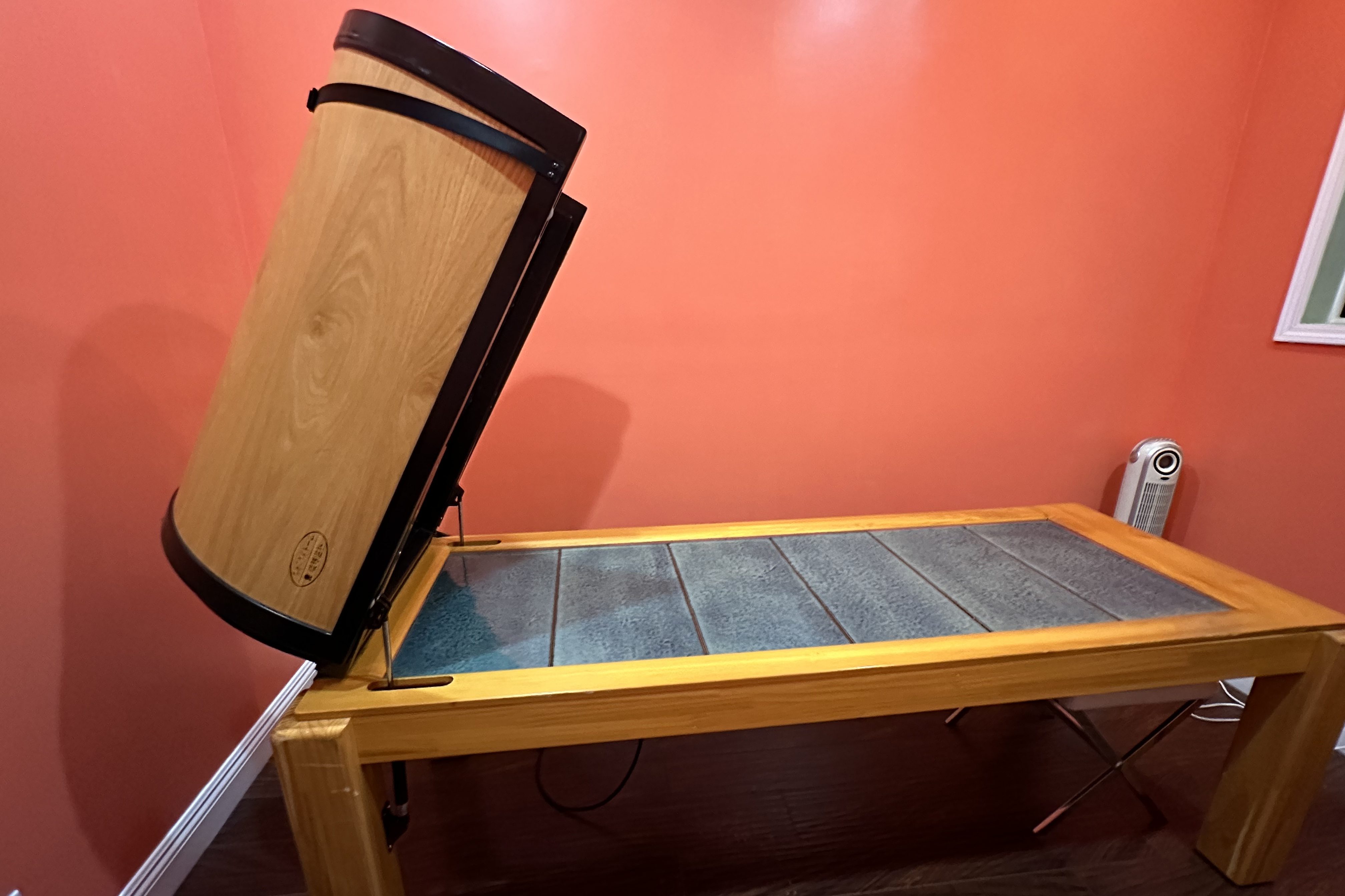 The Jade Stone Detox Dome is for our patient’s to harness the benefits of far-infrared warmth, combined with the therapeutic properties of natural jade stone. Encased in a cover made of cypress wood—valued for its antimicrobial qualities and therapeutic properties in cultures across generations—the Detox Dome creates a serene and restorative environment.